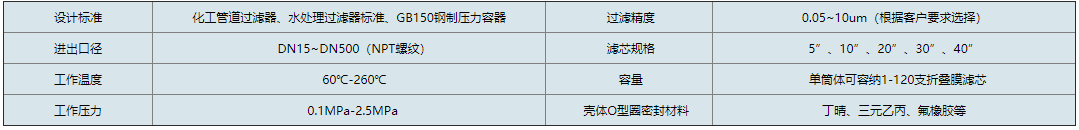 根據現場工藝要求,殼體與濾芯采用多種搭配方式。